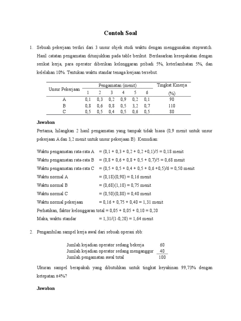Contoh Soal Hitungan Dan Jawaban Manajemen Operasional Bagikan Contoh