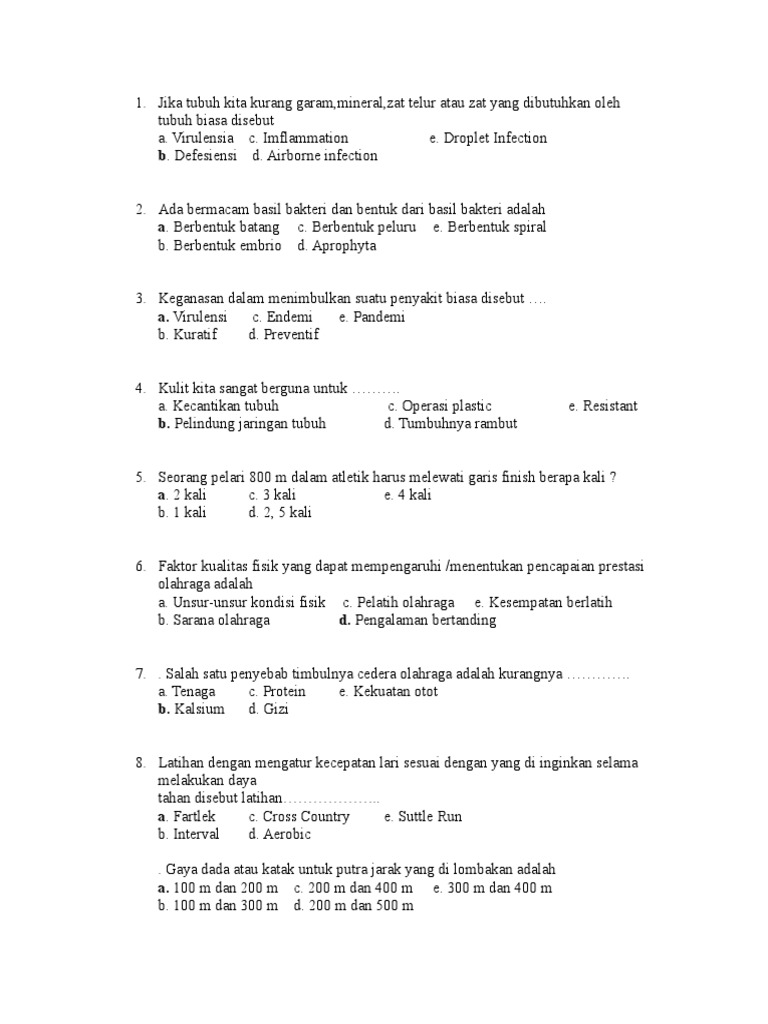 Soal Pelajaran Penjas Kelas 10 Semester 2 Cute766